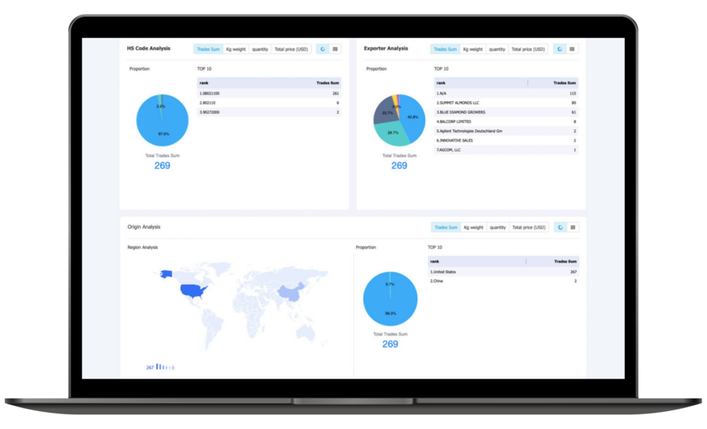 2Puedes identificar los productos principales analizando los códigos HS que se utilizan ampliamente en los envíos de la empresa que está examinando.